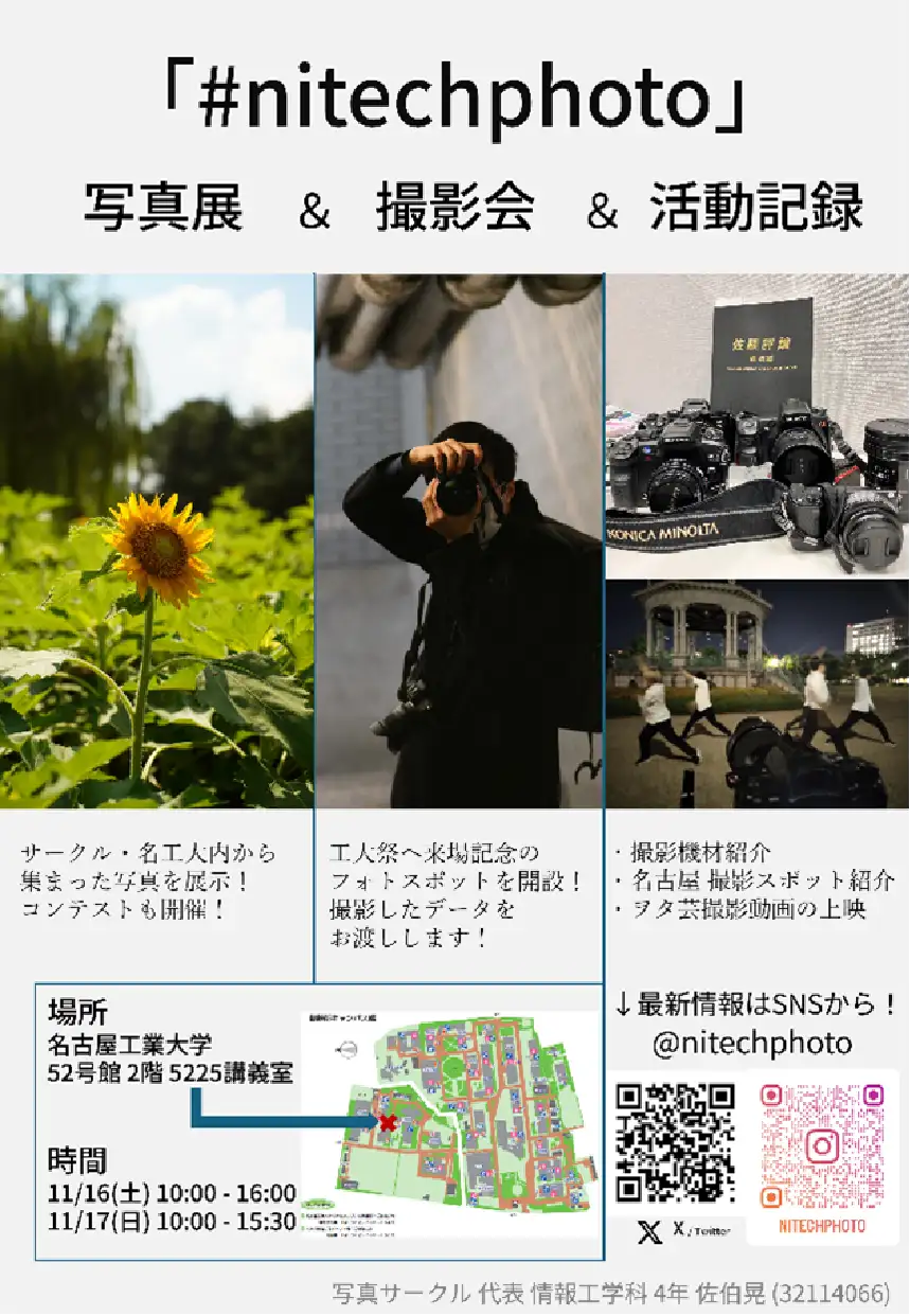 | 5225 | 「#nitechphoto」写真展&撮影会&活動記録 | 写真サークル | |
